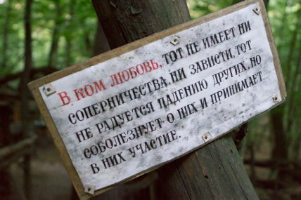 В Голосеевском лесу есть необычный "храм" под открытым небом, который принято называть Сергиева пустынь. Организовал это место в 1999 году некий киевлянин Сергей Борисов. В чаще леса он решил построить свою собственную "церковь", которая будет отличаться от всех остальных.