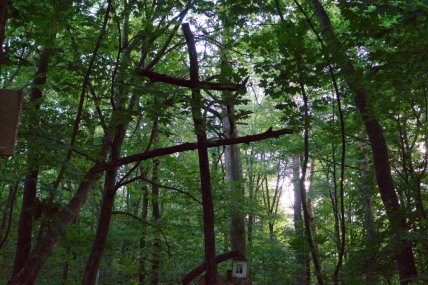 Кресты из палок, алтарь и частокол: как выглядит таинственная Сергиева пустынь в Голосеевском лесу (видео)