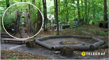 Кресты из палок, алтарь и частокол: как выглядит таинственная Сергиева пустынь в Голосеевском лесу (видео)