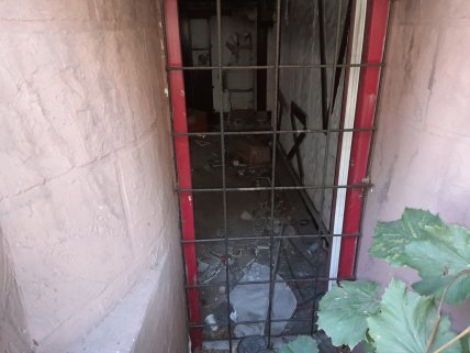 В то же время на дверях со стороны двора висит объявление с проклятием в адрес мародеров, которые, вероятно, растягивали что-то ценное, что оставалось в разрушенной части. А может быть, и не только там.