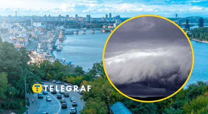 Над Киевом нависла большая и необычная туча. Некоторые жители города предположили, что вскоре начнется грозовой ливень, а другие говорят, что это вовсе не туча, а туман.