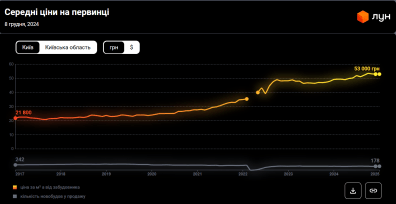В декабре 2024 отмечается ощутимый рост цен на квартиры в новостройках. На данный момент, за метр квадратный в новом доме просят в среднем 53 000 гривен.