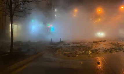 В четверг, 9 января, на перекрестке улиц Жилянской — Симона Петлюры возле железнодорожного вокзала в Киеве прорвало теплотрассу, движение транспорта было усложнено.