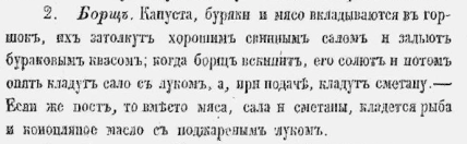 Так, для приготовления борща по случаю "петровской сходки" или "петровского поста" в 1773 году было куплено: "На борщъ зѣлья и цибулі… сировцу… на затирку борщу муки… соли… уксусу… олеи".
