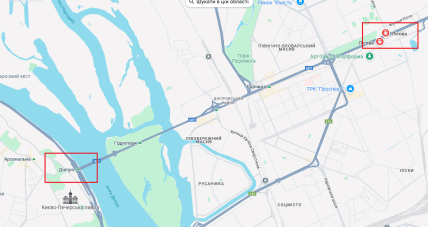 - в направлении от станции метро "Лесная" до "Арсенальной" — вдоль Броварского проспекта, Днепровского спуска, Аллеи Героев Крут, далее по улице Ивана Мазепы до станции метро "Арсенальная".