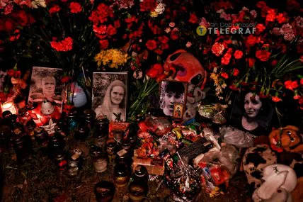 В ночь на 24 апреля российские оккупанты нанесли массированный ракетный удар по Киеву, что привело к гибели 13 человек. После этого местные жители создали стихийный мемориал в память о жертвах обстрела жилой многоэтажки в Святошинском районе.