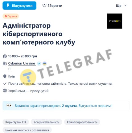 Работа для студентов сегодня пользуется спросом, ведь они стремятся как можно быстрее стать финансово независимыми и активно ищут возможность совмещать обучение с подработкой. К примеру, одна из самых инновационных сетей компьютерных клубов в Украине – Cyberion – открывает вакансию администратора в Киеве.