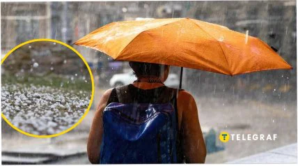 На опубликованных кадрах видно, как крупные капли дождя смешиваются с градинами, которые стучат по крышам автомобилей и тротуарам.