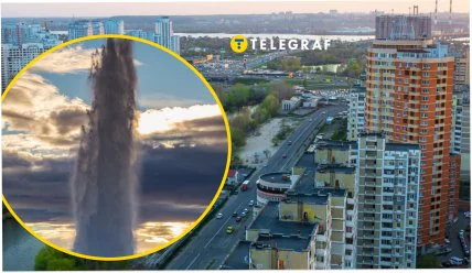 В Киеве в районе Осокорков посреди улицы образовался настоящий гейзер. Струя воды достигала высоты многоэтажного дома.