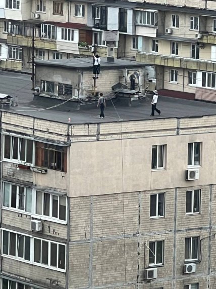 На опубликованных фото можем увидеть троих парней, которые развлекаются на крыше по меньшей мере девятиэтажки.