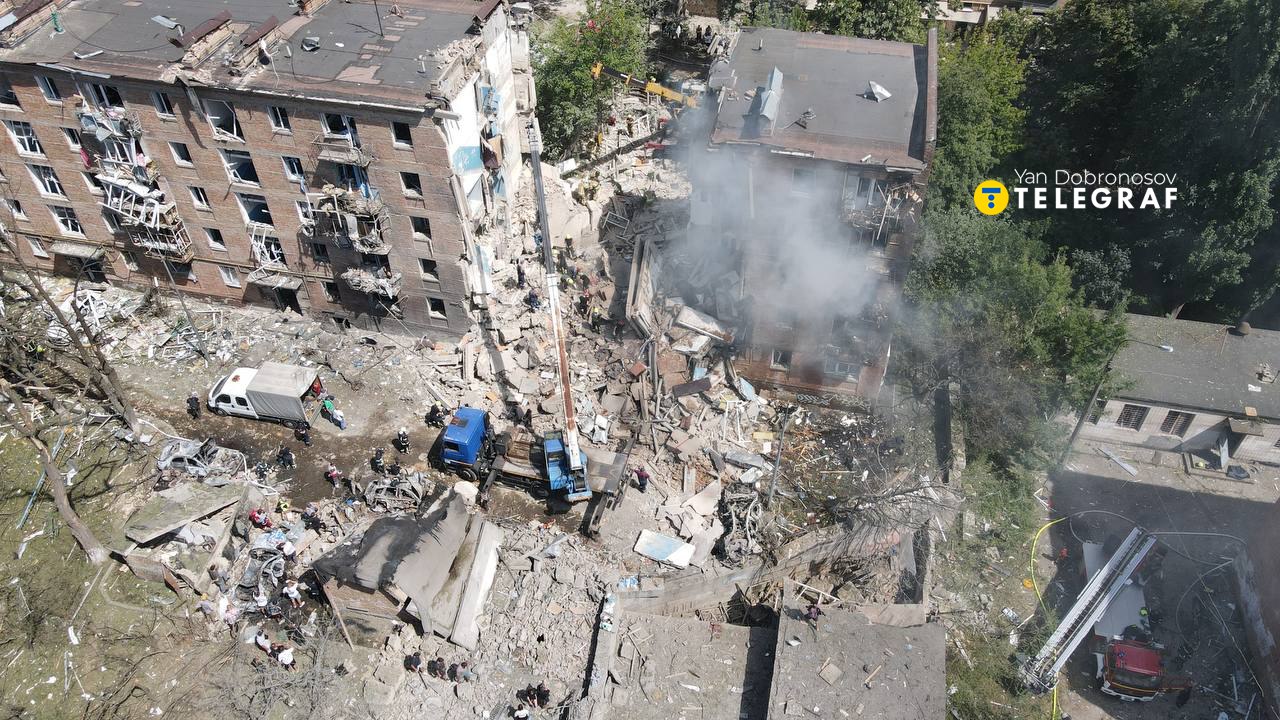 Во время массированной атаки БПЛА 01.01.2025 был поврежден жилой дом на ул. Банковой, 1/10, в результате чего погибли 2 человека (мужчина и женщина), получили ранения 10 человек, из которых 6 человек было госпитализировано, 4 получили помощь на месте происшествия.