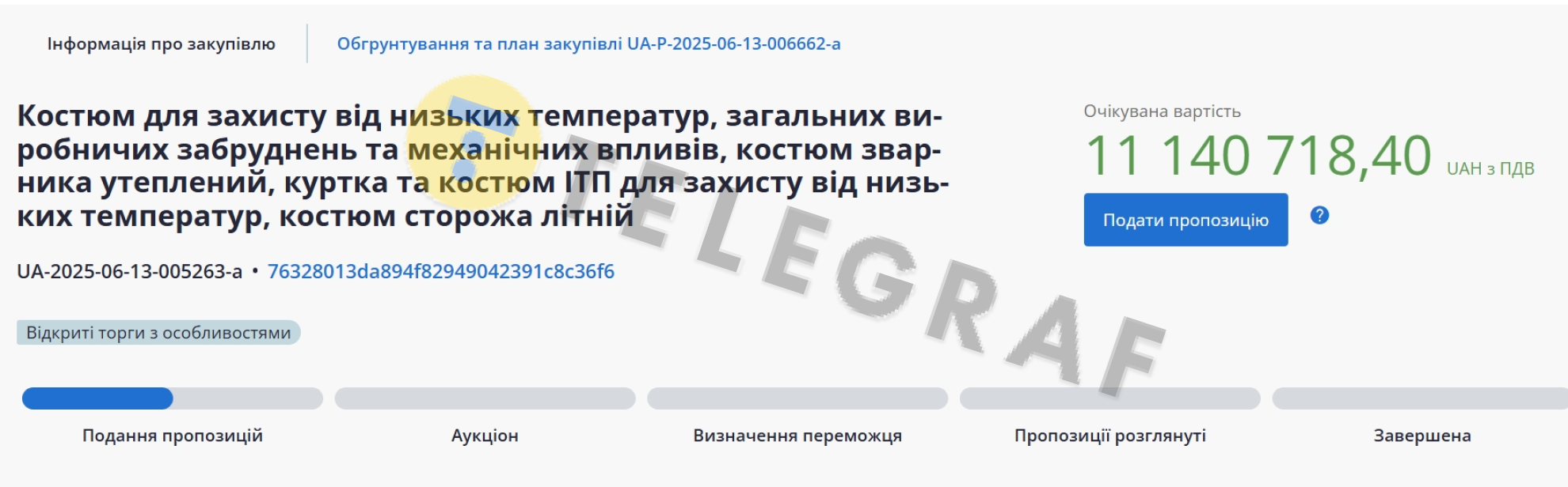 Соответствующее объявление обнародовано в электронной системе публичных закупок "Prozorro". Подать предложение можно до 23 июня.