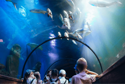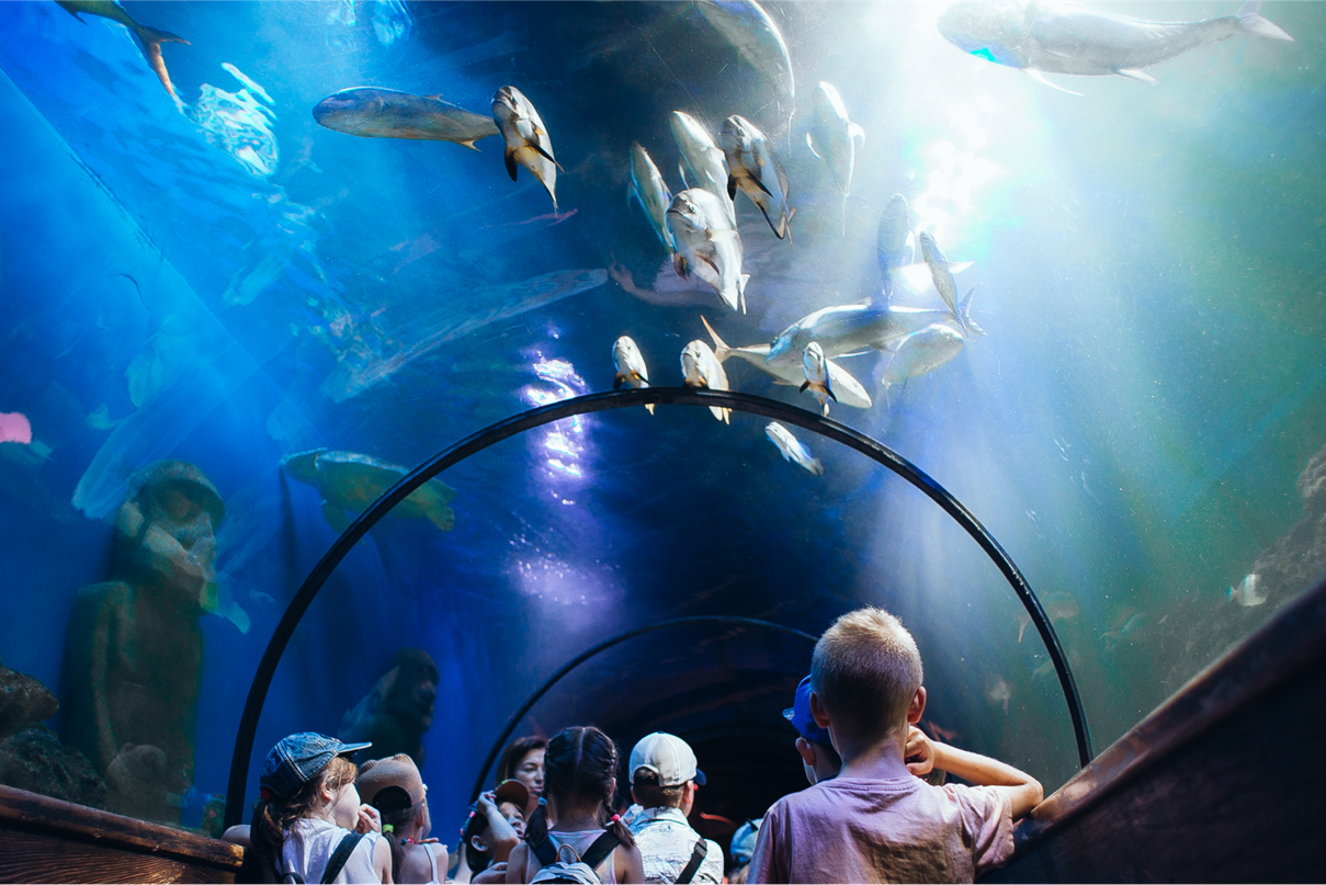 Подводное приключение: более 3000 водных существ, включая скаты, морские черепахи и рыбки. Есть большой подводный тоннель, 50 аквариумов, открытые бассейны. В океанариуме ежедневно проходят шоу с кормлением, мастер-классы для детей.