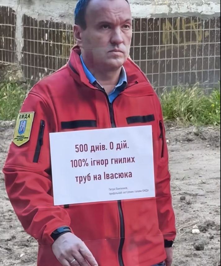 "Фигуры расположены в символическом месте, где недавно произошла очередная авария. В конце видео вы можете увидеть: все, что смогли сделать эти лица с бюджетом в 8 млрд гривен на ЖКХ столицы, — это замена двух метров труб, а рядом оставили гнилые", — говорится в сообщении.