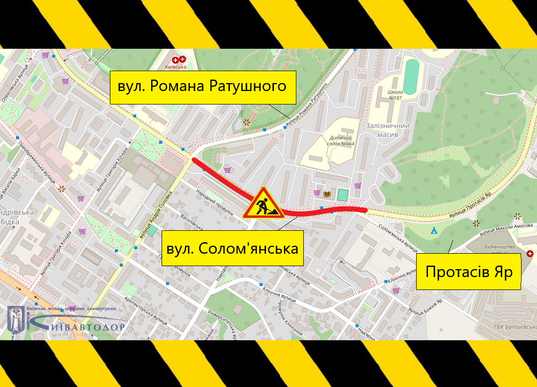 Работы будут проводить специалисты КП ШЭУ Соломенского района на участке от Протасового Яра до улицы Романа Ратушного. В этот период движение транспорта будет частично ограничено.