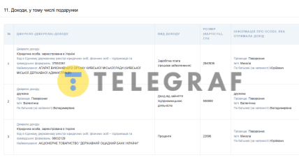 В течение года Поворозник получил 2,64 млн грн зарплаты в КГГА, а его жена задекларировала полмиллиона гривен дохода от предпринимательской деятельности. Ещё почти 23 тыс. грн чиновник получил в виде процентов от "Ощадбанка".