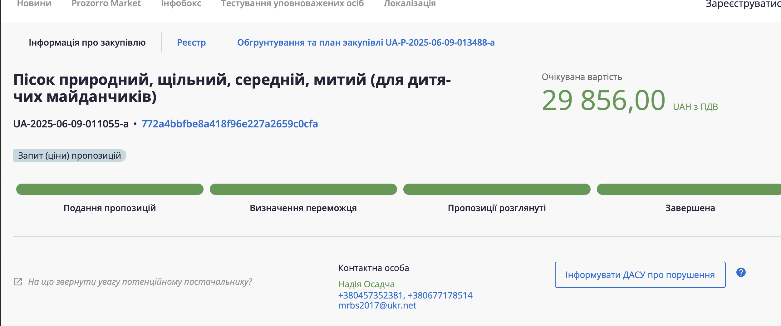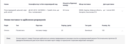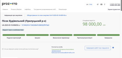 Для полноты картины бизнесмен добавляет, что предприятие "Експрес-техбуд", на цены которого ссылается издание "Наши деньги", осуществляет продажу песка по цене 696 до 763 грн за куб.м для государственных и коммунальных заказчиков — приводит примеры предложений поставщика по продаже продукции в системе Prozorro.