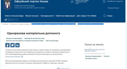 Казалось бы, списки пострадавших у городских и районных властей есть, и можно было бы организовать целевое информирование таких жителей. Но пока, похоже, в КГГА ограничились лишь рядом публикаций со ссылкой на комментарии официальных лиц, которые сразу потерялись в общем потоке новостей. И даже не разместили информацию о новых выплатах в соответствующем разделе "Помощь при повреждении и уничтожении недвижимого имущества" на основном официальном портале kyivcity.gov.ua. Во всяком случае, по состоянию на 7 июля этот раздел содержал только ссылку на выплату матпомощи в размере 10 тысяч гривен, и ни слова о 40 и 20 тысячах ежемесячно.