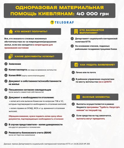 (*ВАЖНО!) В Приказе отдельно указывается, что на эту помощь имеют право киевляне, чья квартира или дом были повреждены или разрушены начиная с 24 февраля 2022 года, если на время подачи заявления они не были восстановлены .