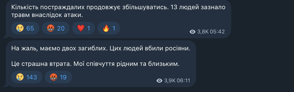 Начальник Киевской городской военной администрации Тимур Ткаченко сообщил, что по состоянию на 6 утра известно о 13 пострадавших в столице. По его данным, двое погибших.