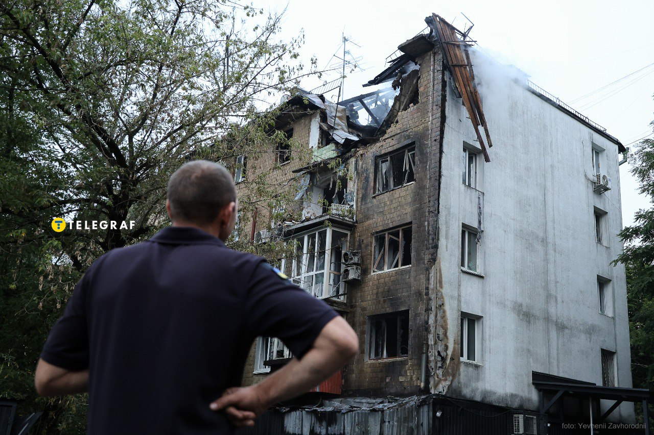В Киеве поврежден жилой дом в результате атаки. Фото: Евгений Завгородний для "Телеграфа"