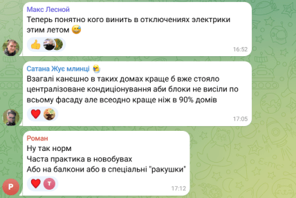 Некоторые иронизировали: "Теперь понятно, кого винить в отключениях электричества этим летом". Один украинец отметил, что было бы лучше сразу предусмотреть централизованную систему кондиционирования, однако и такое техническое решение выглядит благоустроенно — "лучше, чем у 90% домов".