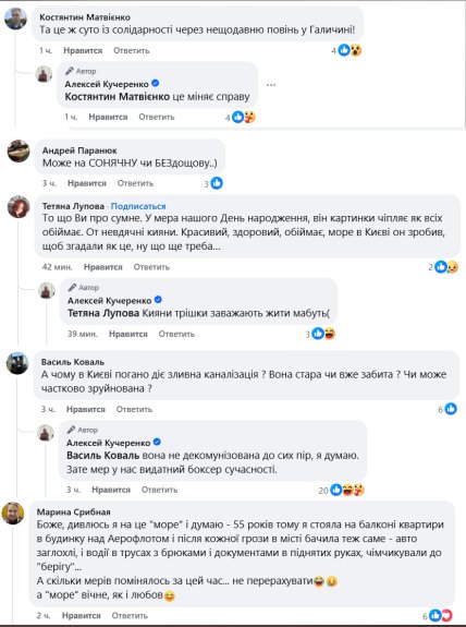 Об этом сообщил народный депутат Алексей Кучеренко ("Батькивщина") в своем Facebook. Местные telegram-каналы в свою очередь информируют, что потопы были замечены не только там.