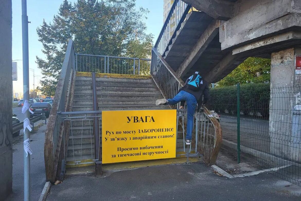 И еще одно инфраструктурное решение – обновление пешеходного моста на улице Саперно-Слободской – тоже выглядит сомнительно. Этот надземный переход позволял пересечь шестиполосное шоссе с оживленным движением и безопасно добраться до остановок автобусов, кольцевой и пригородной электрички на станции Киев-Демеевский, а также большого микрорайона. Объект находился в аварийном состоянии более десяти лет. Поэтому осенью 2024 года КП "Киевавтодор" его перекрывал, обещая провести противоаварийные работы. При этом коммунальщики не предложили альтернативы в виде регулируемого перехода по земле, а ближайшие обустроены были на значительном расстоянии, что прибавляло лишних 10-15 минут ко времени в пути. В конце концов это привело к смертельной аварии, тогда мост "усилили" подпорками и снова открыли. Но ненадолго — 10 июля 2025 стало известно об очередной "остановке" объекта.