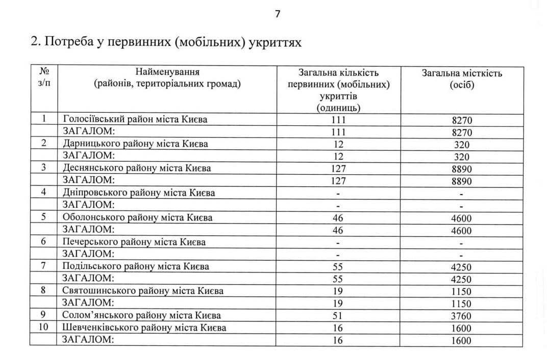На фото выше указано, где и сколько укрытий может появиться в Киеве, а также какое количество человек они могут вмещать. К примеру, в Голосеевском районе — 111 укрытий, в Деснянском — 127 и тд.