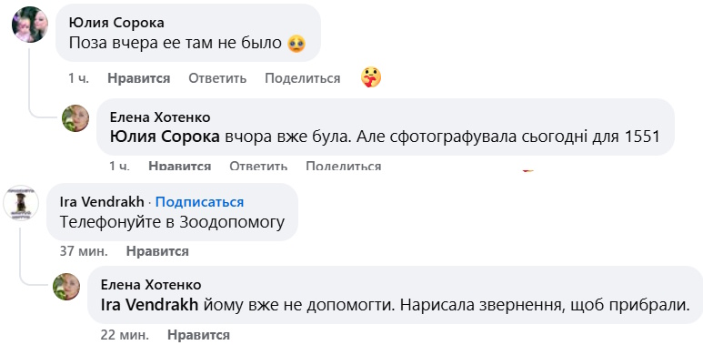 "Много раз слышала о том, что в парке "Отрадный" видят лиса, но сама никогда не видела. К сожалению, вчера увидела, но уже не живого, и, судя по запаху, уже не один день он там находится. Возможно, животное сбило авто"