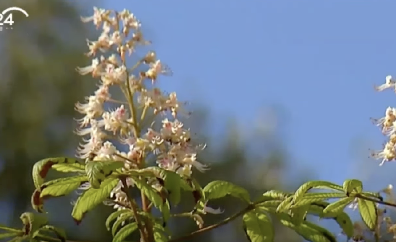 На видео видно, что выглядит это довольно странно, а цветущее дерево сильно бросается в глаза. Кроме того, есть информация, что не только здесь в Киеве зацвели деревья. Корреспондентка рассказывает, что на днях видела похожий каштан на Майдане Независимости. Есть информация о схожих случаях и в других городах, где-то даже цветет акация.