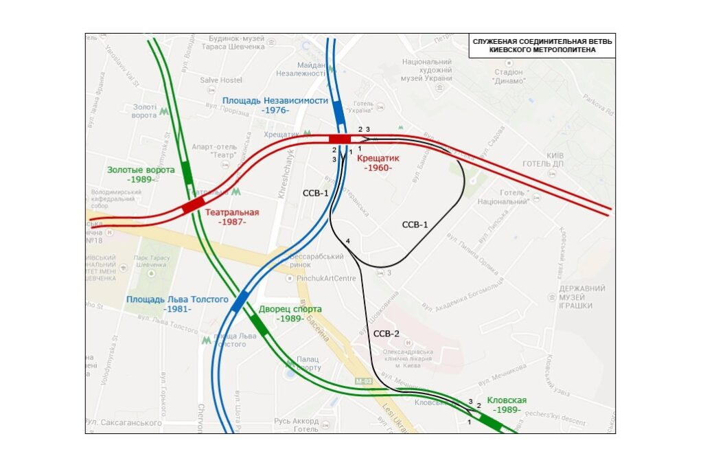 Киевляне ежедневно пересекают переходы между станциями метро, даже не догадываясь, что под ногами их существует другая — закрытая для пассажиров — транспортная артерия. Приблизительно между станциями "Крещатик", "Кловская" и "Майдан Незалежности", скрыта служебная соединительная ветвь, или ССВ.