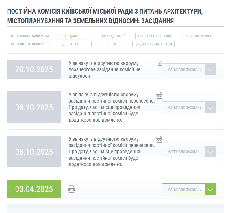 – То есть почти год земельные вопросы в Киеве не рассматриваются? Существует ли возможность запустить работу комиссии, например, если у председателя по определенным причинам нет возможности/желания участвовать в заседаниях?