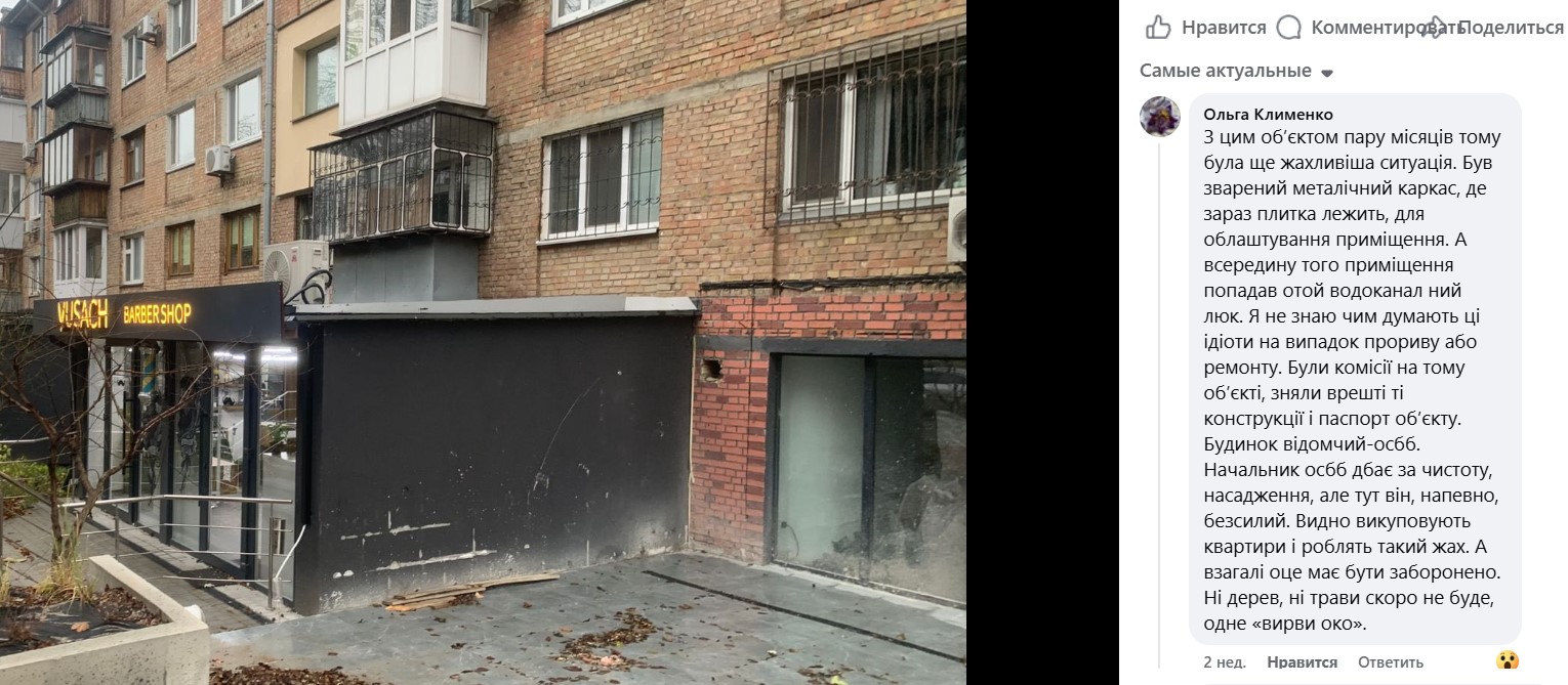 - На Неманской, 2, во время обустройства барбершопа и салона красоты строители сварили металлический каркас для пристройки таким образом, что водопроводный люк оказался в средние помещения. Об этом в социальных сетях рассказывают жильцы дома. При этом общие нормы запрещают строительство над подземными коммуникациями, а в Правилах благоустройства территории Киева указано: такие работы "должны выполняться с соблюдением условий для безопасной эксплуатации".
