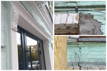 - На Обсерватории, 10 строители увеличили окно и прорубили вход — стены пошли трещинами. Исполнители работ пытались замаскировать их, но сделали это неудачно, использовав дешевую отделку.