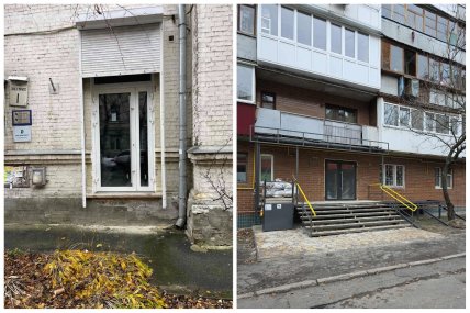 Среди примеров попрания прав жителей и обустройства входных групп с нарушениями в Печерском районе столицы – по ул. Соловцова, 6 и Панаса Мирного, 1. Как сообщил на своей странице в Facebook глава Общественного совета при КГГА Геннадий Кривошея, жильцы домов также не давали согласия на превращение квартир в коммерческие объекты. К тому же здесь под горячую руку строителей попали и зеленые зоны.