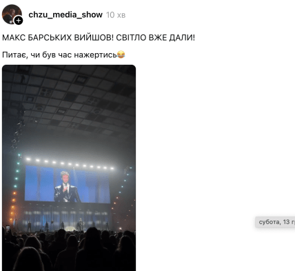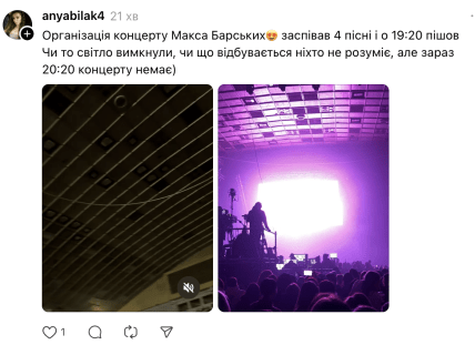 Украинцы уже делятся в сети видео с концерта Макса Барских, который продолжился после внезапного отключения: