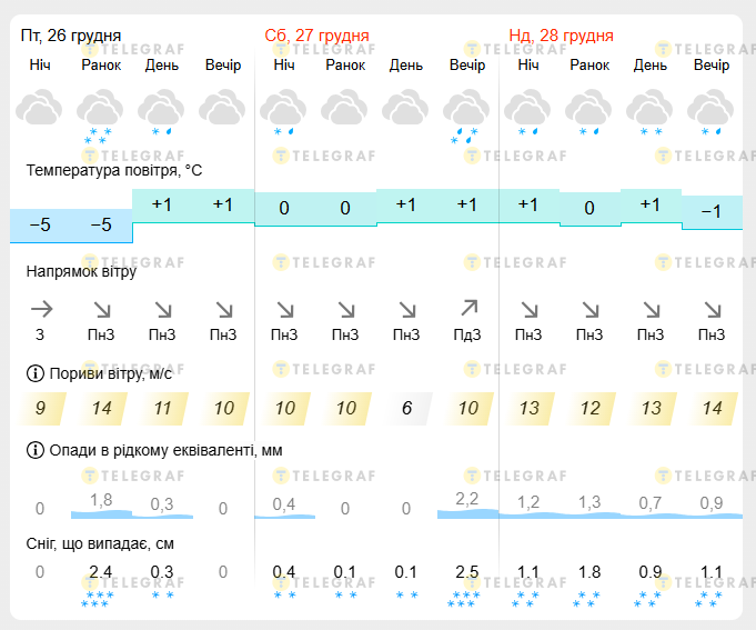 Прогноз погоды в Киеве на 26, 27 и 28 декабря