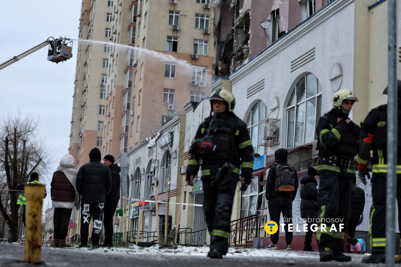 Ночь и утро 27 декабря в Киеве наполнены взрывами — Россия массированно атакует ракетами и дронами. Корреспондент "Телеграфа" Ян Доброносов побывал на месте одного из попаданий.
