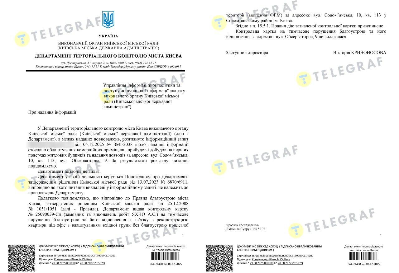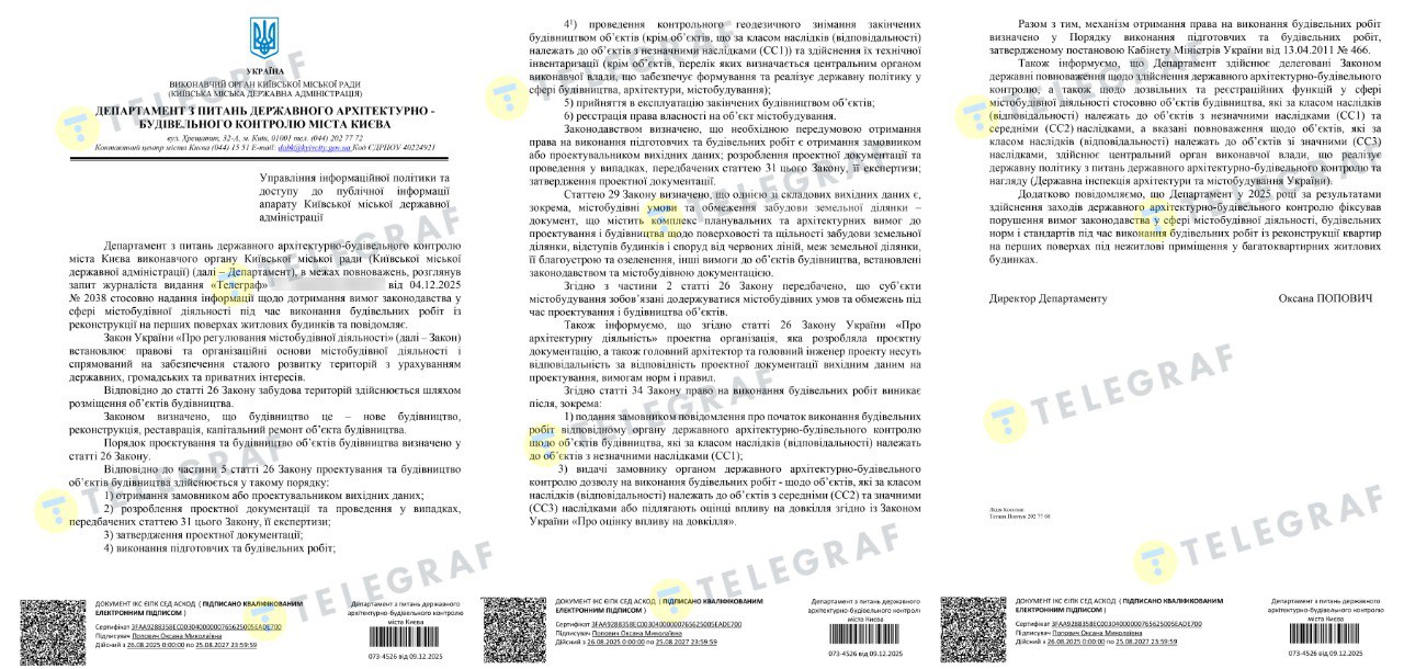 В Департаменте по вопросам государственного архитектурно-строительного контроля КГГА нашему изданию сообщили: в 2025 году фиксировались нарушения при реконструкции квартир на первых этажах многоквартирных домов под нежилые помещения. Впрочем, чиновники ограничились общими формулировками – не привели ни одного конкретного примера проблемных перестроек и не уточнили, какие средства воздействия применили к нарушителям.