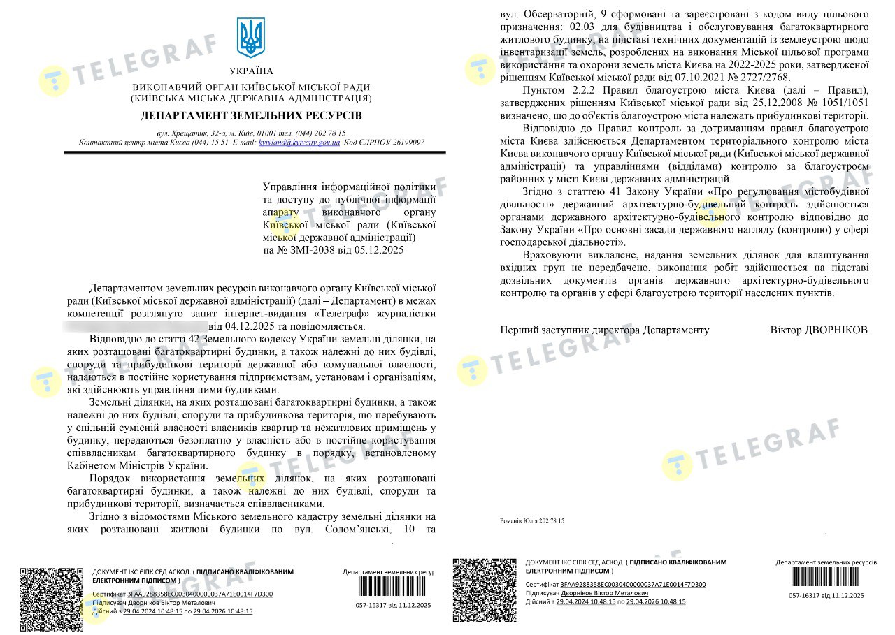Ключевой месседж ответа Департамента земельных ресурсов КГГА – земельные участки под многоэтажками вместе с принадлежащими к ним зданиями, сооружениями и придомовыми территориями могут иметь два правовых режима: