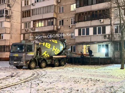 • ул. Оболонский проспект, 28 – балкон квартиры заливали бетоном прямо из бетономешалки для создания отдельной входной группы. Работы проводились ночью, без согласия жителей и с явным изменением габаритов помещения.