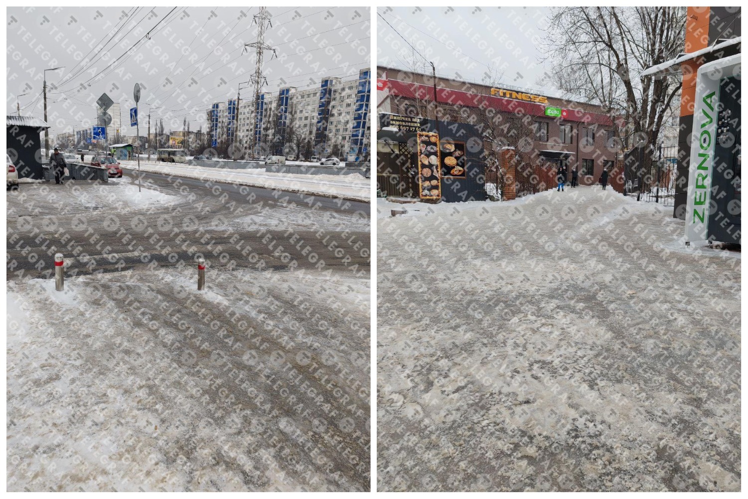 Шеф-редактор группы изданий "Детектор медиа" Наталья Лигочева обращала внимание на состояние тротуаров на Осокорках. По ее словам, они "сплошной лед", а также отмечала, что скользко даже у крупных торговых центров, таких как "Пирамида".