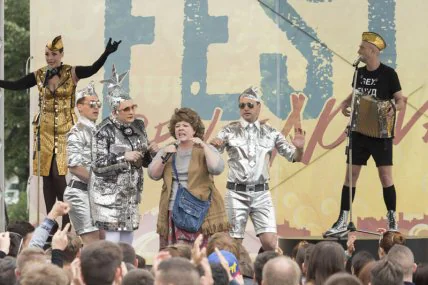Благодаря Евровидению Андрей Данилко, а точнее Верка Сердючка, стала не только эстрадной звездой, но и голливудской киноактрисой. В комедии "Шпион" она появляется в образе популярной певицы, которая на площадном концерте поет "Зибен-зибен, ай люлю". Роль небольшая, но зато ее партнерами стали Джейсон Стетхем и Мелисса Маккарти.