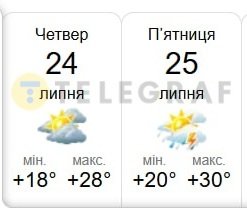 По прогнозу Meteofor, в течение 24-25 июля в городе будет ясная и жаркая погода. Хотя в Sinoptik говорят, что без осадков и гроз, вероятно, не обойдется.
