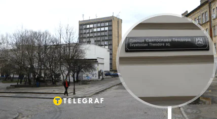 Во Львове произошел скандал с неправильным написанием названия одной из площадей города. Вместо "Площадь Святого Теодора" на табличке написали "Площадь Святослава Теодора".