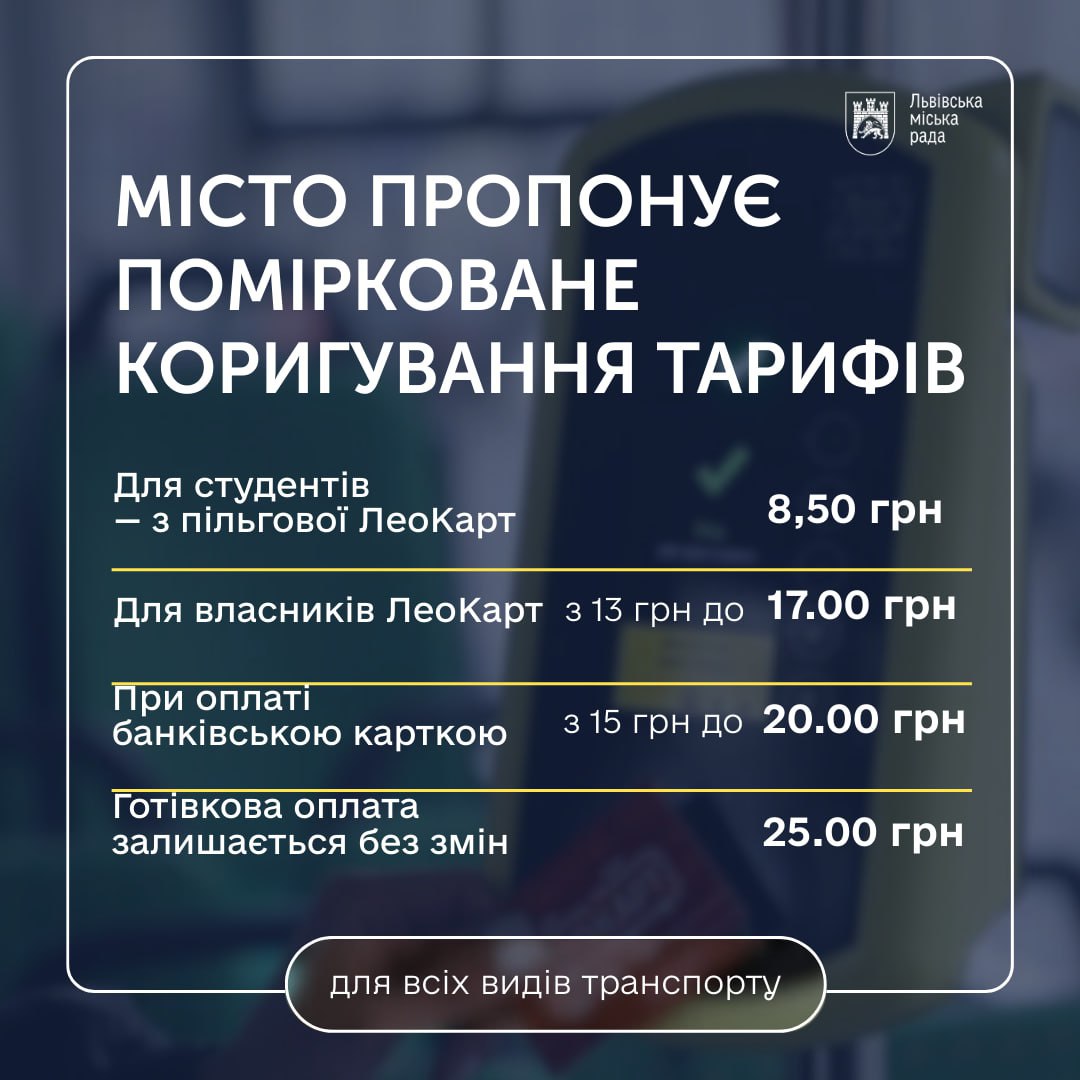 Во Львове не согласились повысить стоимость проезда до 32 гривен, как просили перевозчики. Город после анализа расходов предложил новые, более умеренные тарифы, которые должны учесть как интересы пассажиров, так и потребности транспортников.
