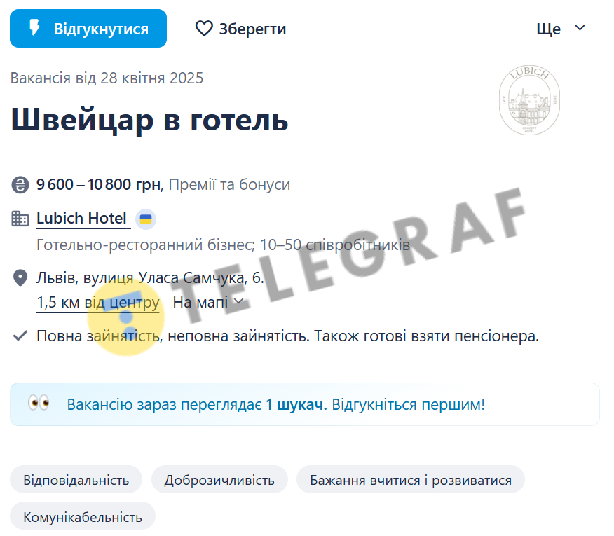 Зарплата будет больше пенсии: во Львове открыли вакансию для пожилых людей в отеле