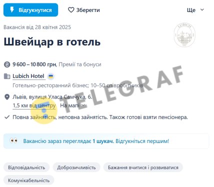 К тому же, место занятости расположено в 1,5 км от сердца Львова.