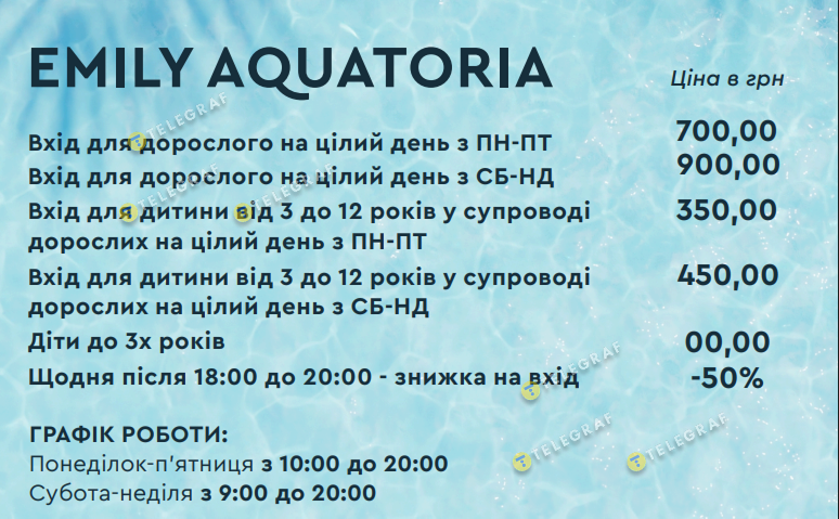 В "Эмили Резорт" цены различаются в зависимости от того, выбрать пляж или бассейн. Максимальная стоимость входа в "Эмили. Акватория" — 900 грн (со взрослого в выходной).